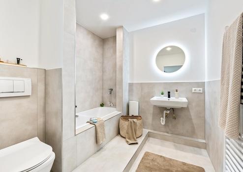 Neue Sanitärobjekte und moderne Fliesen