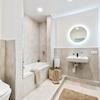 Das moderne Vollbad ist mit neuen Sanitärobjekten und Armaturen sowie neuen großformatigen Fliesen ausgestattet, zusätzlich gibt es ein separates Gäste-WC.