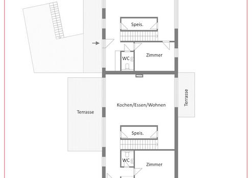 - Drei Wohneinheiten: Doppelhaushälfte auf drei Etagen, zweite Hälfte auf zwei Etagen