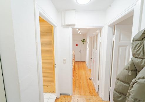 Des Weiteren gehört zum Haus ein großer, alter Garten mit gewachsenem Baumbestand, der von einer romantischen, gut erhaltenen Backsteinmauer umschlossen ist. Er steht allen Hausbewohner:innen zur gemeinschaftlichen Nutzung frei zur Verfügung.