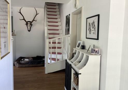 Über eine hübsche Holztreppe erreicht man das Obergeschoss.