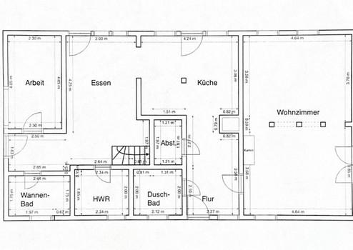 Im gesamten Erdgeschoss, bis auf im Wohnzimmer, befindet sich Fußbodenheizung.