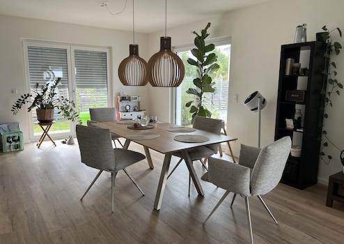 Ab sofort wird ein gehobenes, zweistöckiges Einfamilienhaus zur befristeten Miete angeboten. Das erst 2022 fertiggestellte Haus überzeugt mit sechs hellen Zimmern und zwei Badezimmern. Die großzügige Außenfläche und die hochwertige Einbauküche ergänzen das Angebot.
