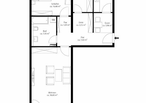 - 3 Zimmer mit funktionaler Raumaufteilung
