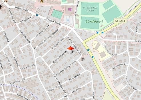 Das ca. 9.000 Einwohner zählende Adelsdorf liegt im mittelfränkischen Landkreis Erlangen - Höchstadt im Aischgrund. Die Anbindung an die Bundesstraße B 470 sowie an die Autobahn A 3 (Nürnberg, München, Würzburg, Frankfurt) oder die A 73 nach Bamberg sind hervorragend. In nur wenigen Minuten sind Sie in Erlangen, Höchstadt und Forchheim. Bis nach Nürnberg benötigen Sie auf der BAB 3 nur ca. 25 Minuten.