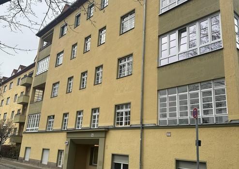Die Wohnung liegt im 2. OG und ist über ein weites Treppenhaus oder mit dem Lift zu erreichen. Sie wurde 2014 innen komplett saniert. Die Räume sind alle sehr hell. Die Fenster sind Doppelkastenfenster aus Holz. In allen Wohnräumen liegen abgeschliffene Holzdielen. Zwischen Wohnzimmer und dem daneben liegenden großen Raum befindet sich eine doppelflügelige Tür. Alle Innentüren sind aus Holz. Im weiträumigen Flur ist ein Abstellschrank eingebaut. In der Küche gibt es eine EBK mit Geschirrspülmaschine und auch genügend Platz für einen Esstisch.