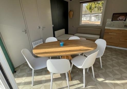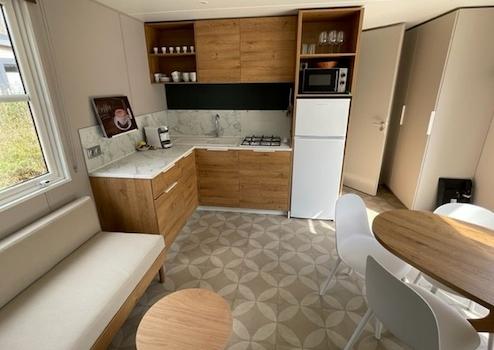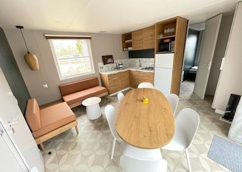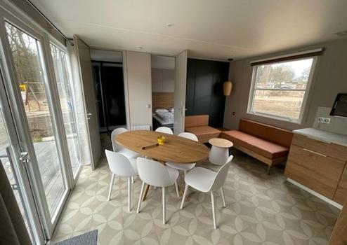 Das Haus ist voll möbliert, komplett ausgestattet und sofort bezugsbereit. Mit ca. 40 m² Wohnfläche, drei Schlafzimmern und einer großzügigen 18 m² Veranda bietet es ausreichend Platz für Familien, Kinder und Haustiere.