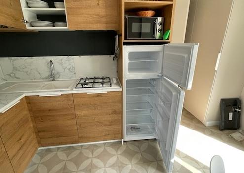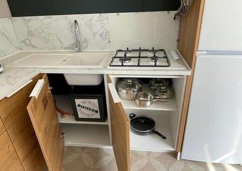 Voll ausgestattete Küche (Kühlschrank, Gasherd)