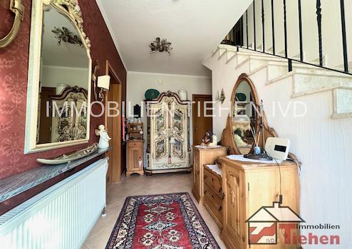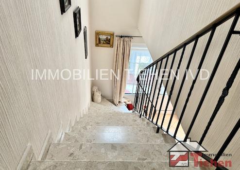 - eine freistehende Marmortreppe mit Metallhandlauf führt über den Dielenbereich im EG in das DG des Hauses.