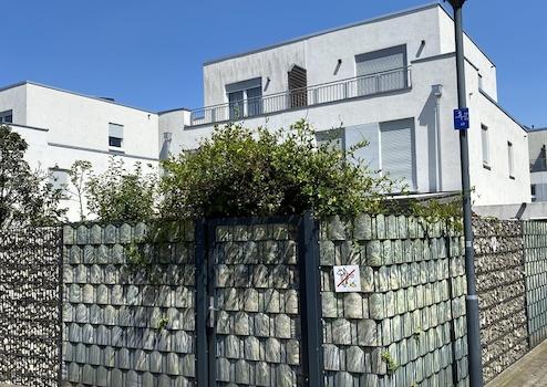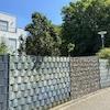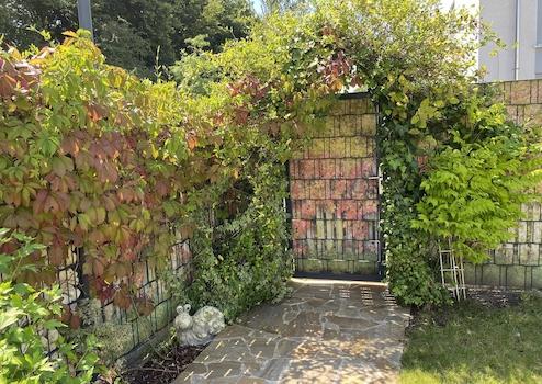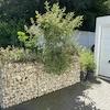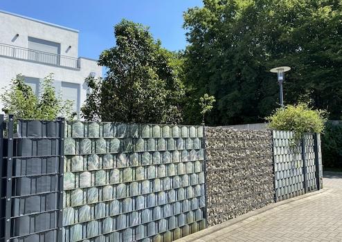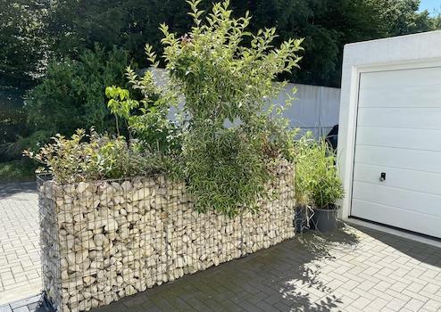 - Gabionenzäune und -elemente um das Haus herum