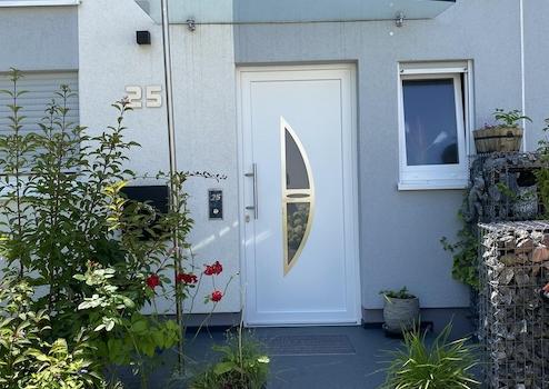 - hochwertige Überdachung des Hauseinganges mit massiver Eingangsstufe
