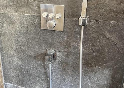 - ein großes Bad und ein Gäste-WC mit hochwertigen Armaturen und Heizelementen