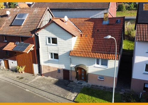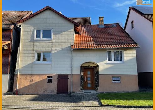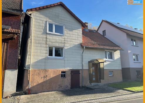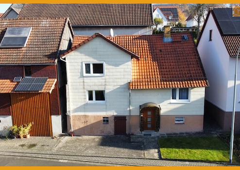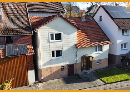 Diese kompakte Wohnimmobilie ist ideal für Menschen geeignet, die eine überschaubare Wohnfläche gepaart mit einem pflegeleichten Grundstück zu schätzen wissen. Das modernisierungsbedürftige Objekt wurde ursprünglich als Fachwerkhaus erbaut. Im Jahr 1961 ist der Scheunenanteil zu Wohnraum in massiver Bauweise ausgebaut worden. Heute finden Sie in der unteren Wohnetage die Küche mit anliegendem Esszimmer, ein kleines Wohnzimmer, ein geräumiges Schlafzimmer und ein separates WC älteren Baujahres. Das oberste Geschoss beherbergt zudem ein weiteres Schlafzimmer, das Hauptbad mit Duschwanne aus den 60er Jahren und einen Abstellraum, der bei Bedarf in das Badezimmer integriert werden könnte. Weitere Ausbaureserve bietet der unausgebaute Teil der Etage, der aktuell lediglich als Lagerfläche und Dachboden genutzt wird. Im Kellerbereich des Hauses finden Sie insgesamt 4 Abstellräume, wobei einer der Räume nur von außen erreicht werden kann. Ein kleines Fahrzeug kann am Haus oder an der Anliegerstraße vor dem Haus abgestellt werden. Eine kleine Sitzmöglichkeit bietet ein kleiner Grünstreifen vor dem Objekt.