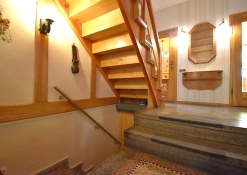 Dachgeschoss = Holz mit Stufenschoner, einseitiger Holz-Handlauf