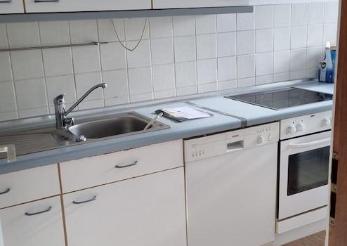 - Küche mit Einbauten, Spülmaschine, Herd mit