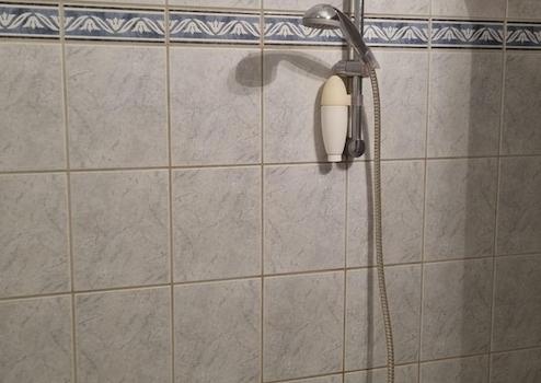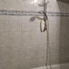 Das innenliegende Badezimmer verfügt über eine Duschwanne, einen Waschtisch sowie einen Waschmaschinenanschluss. Zusätzlich steht ein separates Gäste-WC mit hellen Fliesen zur Verfügung. Eine praktische Abstellkammer sorgt für zusätzlichen Stauraum.