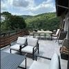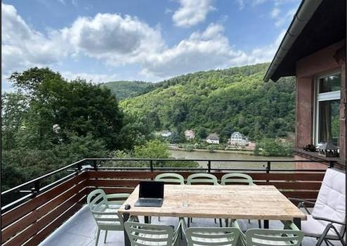 •Balkon in der Küche mit Blick an der Neckar und Wald