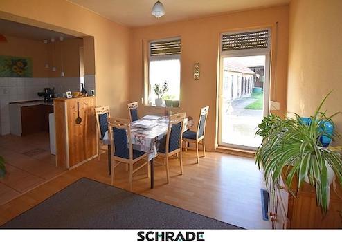 Wenn man sich ein Haus teilt passiert etwas Wunderbares: es wird größer. Immer ist jemand da und trotzdem hat jeder seinen eigenen Bereich. Das kling toll... Dieses liebevoll gestaltete 2-Familienhaus zeigt sich auf jeder Ebene mit einer 4-Raum-Wohnung und 2 Abstellräumen. Im EG ist ein helles Wannenbad und im OG zeigt es sich mit Wanne und Dusche. Baulich mit dem Wohnhaus verbunden ist ein ehemaliger Partysaal mit straßen- und hofseitigen Zugang. Dieser lässt sich zukünftig als Atelier, Yogaraum, Hobbywerkstatt oder auch als Loftwohnung gestalten. Außerdem ist das Grundstück mit einem massiven Stallgebäude und einer Fachwerkscheune bebaut, die über die Zufahrt linker Hand erreichbar sind. Im Anschluss daran läuft es als Grünfläche mit Obstbaumbestand aus.