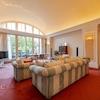 Der sonnendurchflutete 41,80 m² große Wohnbereich bildet das Herz der Wohnung: Deckenhöhen bis ca. 3,90 m, ein profiliertes Kranzgesims, gerahmte Wandfelder und feine Pilaster mit dezenten Kapitellen sowie glatter, italienischer Marmorputz (Stucco Veneziano) an den Wänden verleihen dem Raum klassische Eleganz. Eine flach gewölbte Decke (Tonnengewölbe) mit umlaufender Voute setzt indirektes Licht in Szene; großzügige Fenster öffnen den Blick ins Grüne, und der anschließende Balkon erweitert den Raum – mit schönem Ausblick in den Garten.