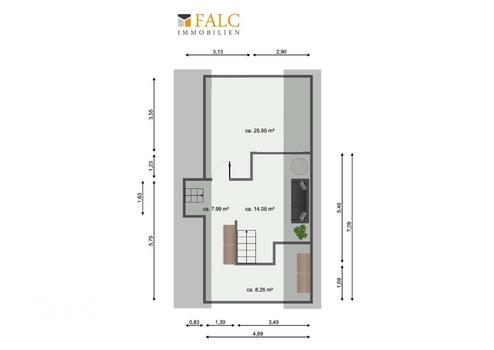 + Nutzfläche - 48,26 m² Dachspeicher und 20 m² Kellerraum
