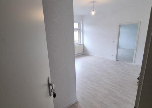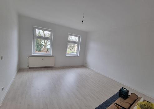 Die sanierte Wohnung befindet sich im 1. Obergeschoss eines Mehrfamilienhauses mit 5 Parteien und ist ab sofort verfügbar. Die Wohnung verfügt über 2 lichtdurchflutete, große Zimmer. Zusätzlich gibt es einen Abstellraum. Dieser kann z. B. als Home Office- oder Hobby-Zimmer genutzt werden und befindet sich direkt gegenüber von der Wohnungseingangstür (siehe Grundriss).