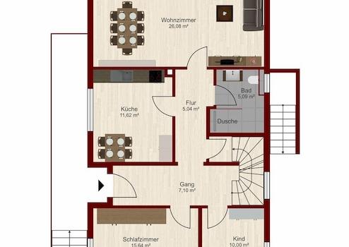 Das Haus ist so gestaltet, dass es innerfamiliär von zwei Parteien bewohnt werden kann. Eine vollständige Trennung in zwei separate Wohneinheiten besteht jedoch nicht, bietet aber die Möglichkeit, Gemeinschaft und Privatsphäre flexibel zu gestalten. Die Raumaufteilung bietet vielfältige Nutzungsmöglichkeiten, wobei einige Renovierungsarbeiten notwendig sind, um das Haus nach heutigem Geschmack und modernen Standards zu gestalten.