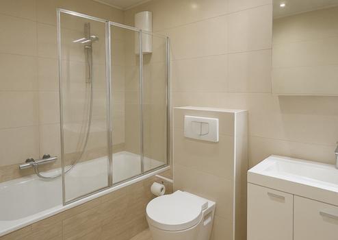 * Bad mit Wanne, Dusche, Waschbecken und WC