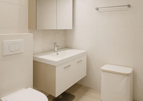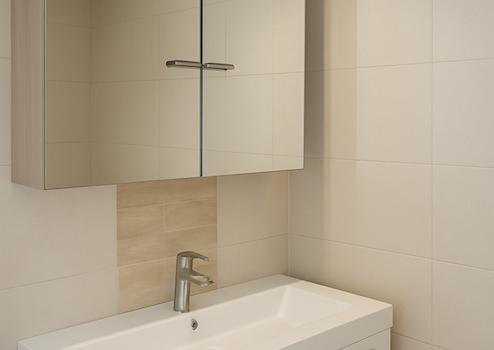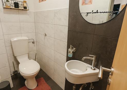 Das Badezimmer wurde modernisiert und ist mit Badewanne, Duschabtrennung und WC ausgestattet. Ein separates Gäste-WC sowie ein praktischer Abstellraum innerhalb der Wohnung ergänzen das Raumangebot.