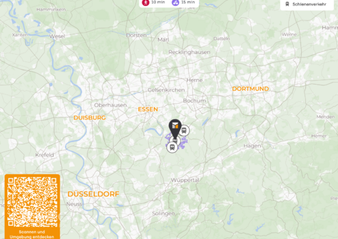 Die Verkehrsanbindung ist ausgezeichnet: Über die kurz erreichbaren Schnellstraßen und Autobahnen wie die A 535 und A 44 ist z. B. Wuppertal in etwa 15‑20 Minuten erreichbar.