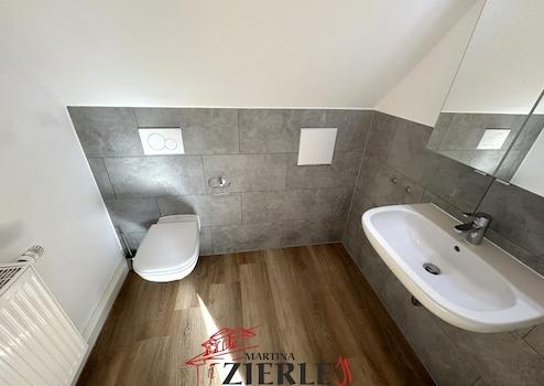 Die zweite Wohnebene wurde erst 2023 ausgebaut. Hier finden Sie eine zweite Toilette mit Handwaschbecken und ein schönes, gemütliches Zimmer mit reichlich Gestaltungsmöglichkeiten.