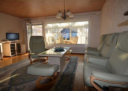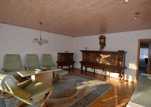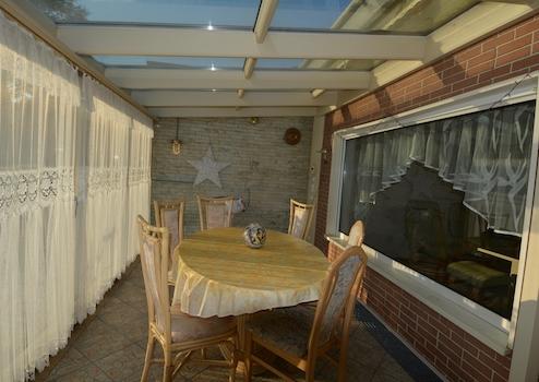 Im Erdgeschoß haben Sie ein großes Wohnzimmer mit Zugang zum beheizten Wintergarten, von dem Sie auch in den schönen gepflegten Garten treten können.