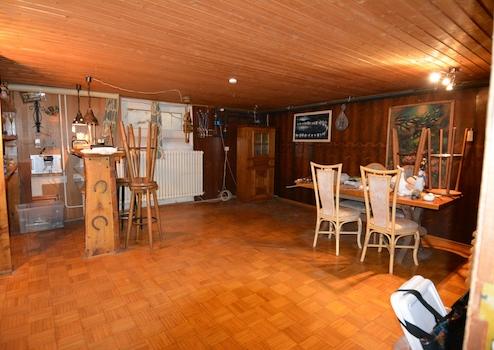 Im Keller gibt es einen großen Heizungsraum, einen Raum mit dem Öltank, einen Vorratsraum mit Sauna, einen großen und einen kleineren Hobbyraum. Der komplette Keller ist gefliest.