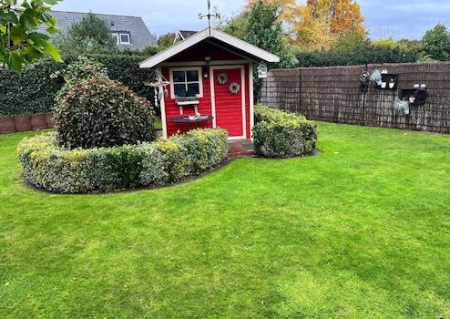 Der Garten und die überdachte Terrasse laden zum Verweilen ein, während der Kamin für gemütliche Abende sorgt. Eine Garage mit Geräteraum sowie ein Gartenhaus vervollständigen dieses Angebot. In 2009 erfolgte der Einbau einer neuen Gasheizung.