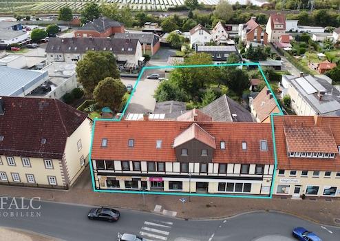 Angeboten wird ein vielseitig nutzbares Wohn- und Geschäftshaus auf einem großzügigen Bauland Grundstück von rund 2.662 m² bestehend aus 3 Flurstücken. Die Immobilie befindet sich in einer stark frequentierten und zugleich etablierten Lage von Nörten-Hardenberg, wodurch sich sowohl die Wohn- als auch die Gewerbeflächen ideal vermarkten lassen. Insgesamt verfügt das Gebäude über eine Wohnfläche von etwa 510 m² sowie über rund 540 m² Gewerbefläche. Ergänzt wird das Angebot durch ein weiteres kleines Wohnhaus mit einer Wohnfläche von etwa 80 m², welches sich auf dem angrenzenden Grundstück befindet und derzeit vermietet ist.