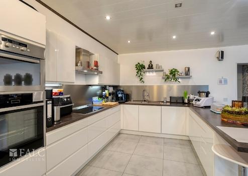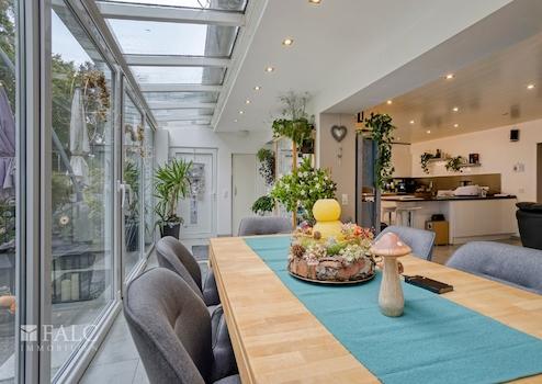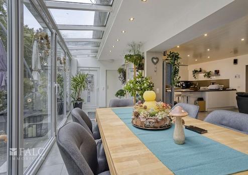 Die zweite Einheit bietet eine moderne, kompakte Raumaufteilung offener Wohn und Essbereich sowie einen schönen Wintergarten mit Aussicht in den dazugehörigen Garten. Die Wohnung verfügt über viel Komfort mit einer hochwertigen Einbauküche.