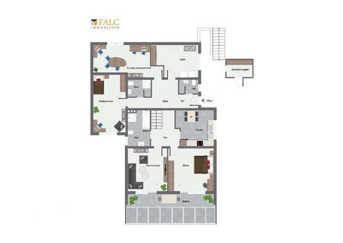Durch eine einfache bauliche Anpassung können beide Wohnungen zu einer großen Einheit mit 214 m² Wohnfläche verbunden werden – perfekt für Familien mit Platzbedarf oder repräsentatives Wohnen mit separatem Arbeitsbereich.