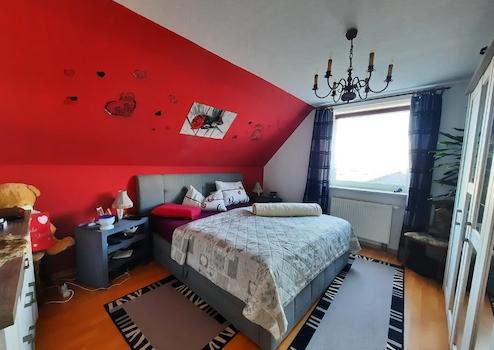 Im Obergeschoss befinden sich das helle Schlafzimmer, ein freundliches Kinderzimmer sowie ein weiteres Zimmer, das sich ideal als Arbeits- oder Gästezimmer eignet. Das großzügige Badezimmer verfügt über ein Fenster, eine Badewanne und eine separate Dusche – perfekt für Familien und Berufstätige. Vom Arbeitszimmer haben Sie auch, für mehr Stauraum, einen Zugang zum Dachboden.
