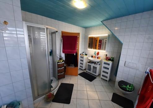 - Schlafzimmer, Kinderzimmer, Arbeitszimmer und Badezimmer mit Badewanne und Dusche auf der oberen Etage