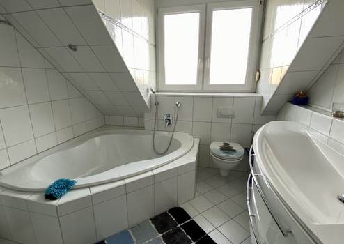 Im Obergeschoss befinden sich drei Zimmer, ein geschickter Abstellraum sowie das Tageslichtbad mit Wanne, Dusche und FB-Heizung.