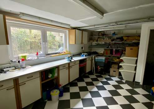 Die Immobilie ist komplett unterkellert mit einem Gäste-Bad und Zugang in den Garten, ein weiteres Zimmer sowie Werkstatt, Vorratskeller und Haustechnik.
