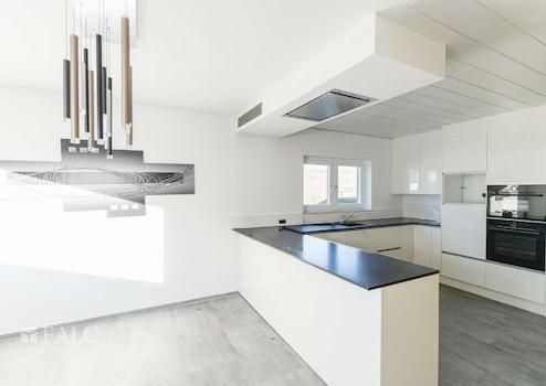 Die Küche ist großzügig gestaltet und verfügt über eine neuwertige und hochwertige Einbauküche aus 2023 mit BOSCH-Geräten sowie einen separaten Essbereich. Eine zweiflügelige Schwingtür verbindet den Küchen- mit dem Wohnbereich und sorgt für ein offenes Raumgefühl.