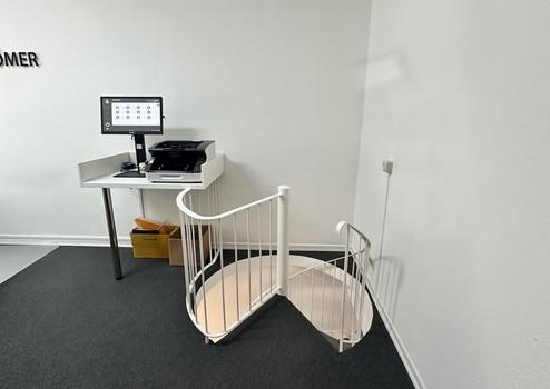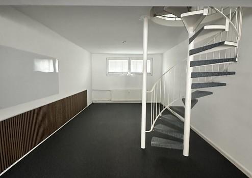 Die Gesamtfläche von ca. 203 m² verteilt sich auf zwei Etagen (Hochparterre und Souterrain), die über eine innenliegende Wendeltreppe miteinander verbunden sind. Beide besitzen separate Ausgänge zum Gemeinschafts-Hausflur.