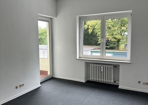 Hochparterre: 4 Zimmer, kl. Küche, Diele, Gäste-WC, Balkon (von zwei Räumen zu betreten), ca. 103 m² (in der Teilungserklärung ausgewiesen als Büroraum).