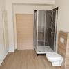 Das Bad wurde von einer Architektin modern gestaltet und verfügt über Vinylboden und Wandverblendungen in Schiefer- und Holzoptik. Die große Dusche wird von einer Badewanne ergänzt. Ein großes Fenster ist ideal zum Lüften.