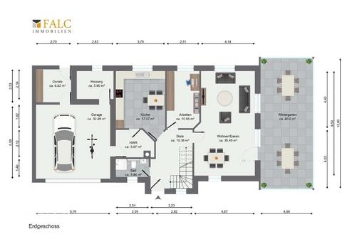 Das Erdgeschoss empfängt Sie mit einer zentralen Diele, von der aus alle wichtigen Bereiche erreichbar sind. Der großzügige Wohn- und Essbereich bildet das Herzstück des Hauses. Große Fensterflächen sorgen für viel Tageslicht und ermöglichen einen weiten Blick in den Garten. Der anschließende Wintergarten erweitert den Wohnraum und eignet sich perfekt als Ruhezone, Essbereich oder zusätzlicher Aufenthaltsraum – unabhängig von der Jahreszeit.