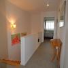 Eine elegante Echtholztreppe führt in das obere Geschoss, wo sich die Wohnbereiche harmonisch über zwei Ebenen verteilen. Das großzügige Badezimmer ist mit einer Badewanne, einer separaten Dusche sowie einem Doppelwaschbecken ausgestattet; zusätzlich steht ein Gäste-WC zur Verfügung. Eine praktische Kammer bietet zusätzlichen Stauraum.