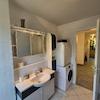 Tagelicht-Bad mit Dusche und Badewanne. Gäste-WC.