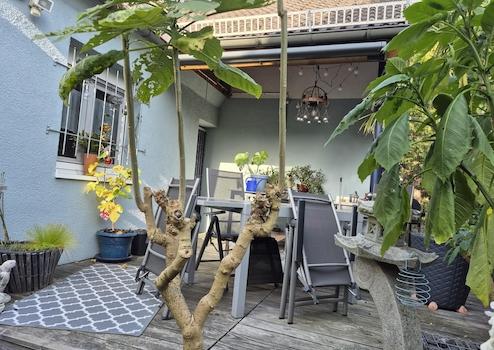 -Viel Grün im eher naturbelassenen Garten lädt Sie ein zu entspannen