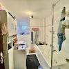 1 Einbauküche mit gehobenem Standard (Ceran- Kochfeld, Spülmaschine, Kühlschrank und Backofen).Sie finden sehr helle und praktisch geschnittene Wohnungen vor. Sie sind mit hellem Parkett und pflegeleichten Marmorfliesen ausgestattet. Das moderne Bad in hellgrauem Marmor verfügt über eine Dusche und ein Fenster.