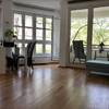 Die helle Wohnung liegt im ersten Obergeschoss und ist bequem per Aufzug erreichbar. Hochwertiges Echtholzparkett und großzügige Fensterflächen schaffen ein freundliches Wohnambiente. In der geräumigen Diele bietet ein großer Einbauschrank mit Schiebetüren praktischen Stauraum.
